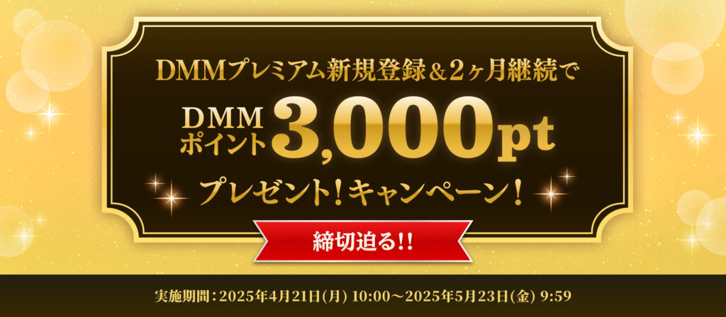 DMMポイントを使えば、プレミアム会員費の支払いも可能。キャンペーンでポイントがもらえることも多いので、常にチェック!